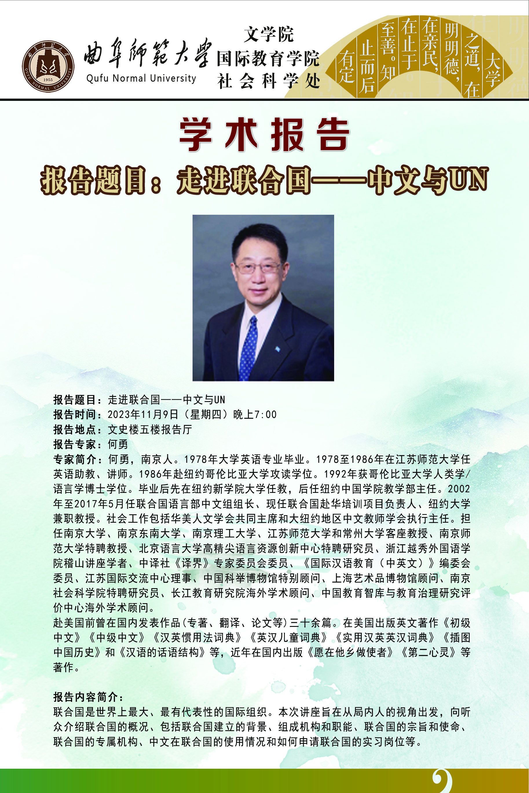 学术报告预告|何勇:走进联合国——中文与UN
