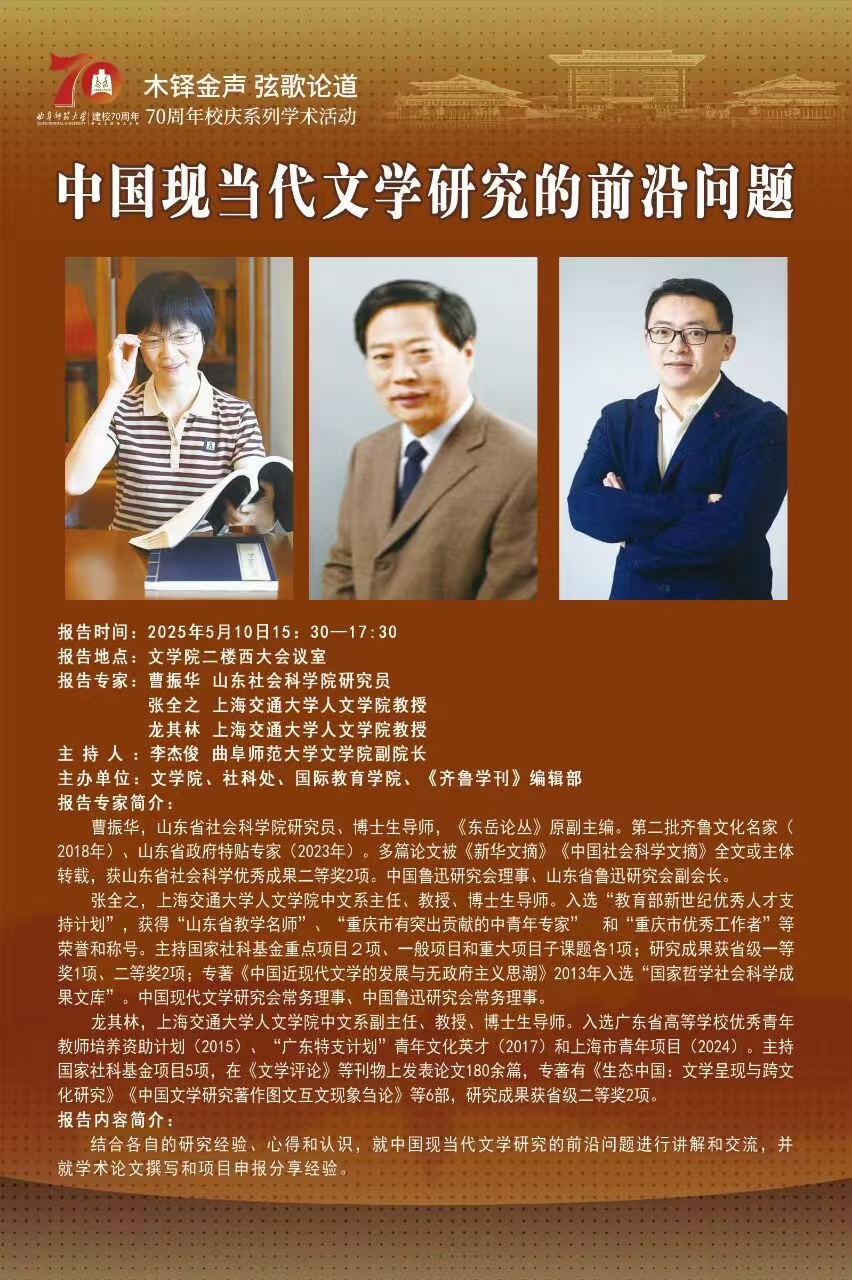 70周年校庆系列学术报告|中国现当代文学研究的前沿问题