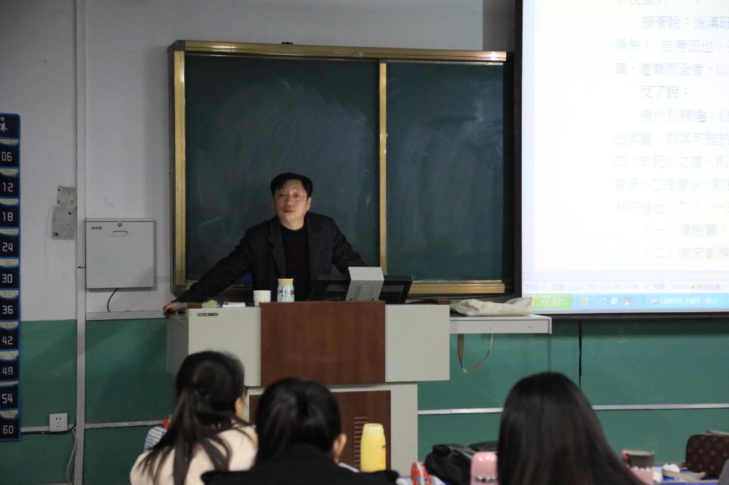 在讲座中,丁教授主要从阅读、文献选取、治学三说及选题创新等四个方面向同学们详细地讲解了“如何才能写好一篇学术论文”。丁教授指出在研究生学习生活中要广泛地阅读,既要有量的积累,也要有质的提升,同时强调在文献选取过程中要认真鉴别文献的真伪。