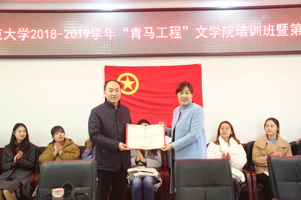 学校团委副书记张明洁老师为王明科老师颁发“91大赛 青年马克思主义者培养工程导师”聘书,指导“青马工程”课程培训。