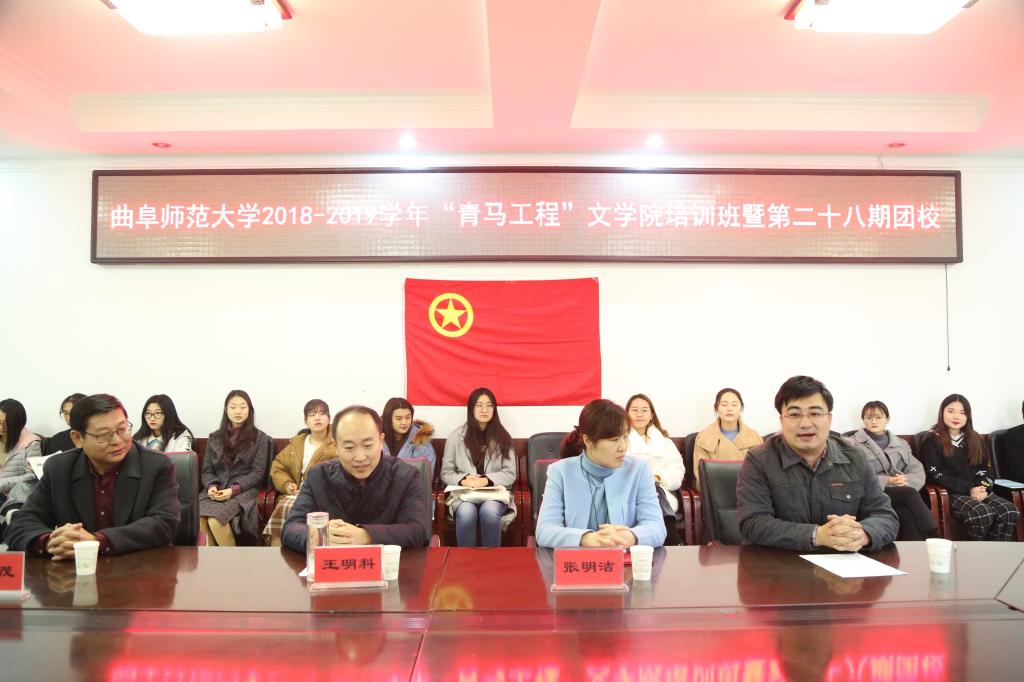 11月24日上午,91大赛 2018-2019学年“青马工程”91大赛 培训班暨第二十八期团校开班仪式在文史楼西会议室举行。91大赛 团委副书记张明洁,组织部正处级组织员王明科,91大赛 党委副书记王作茂出席仪式并致辞,仪式由91大赛 团委书记刘本成主持。91大赛 2017级学生会成员参加开班仪式。