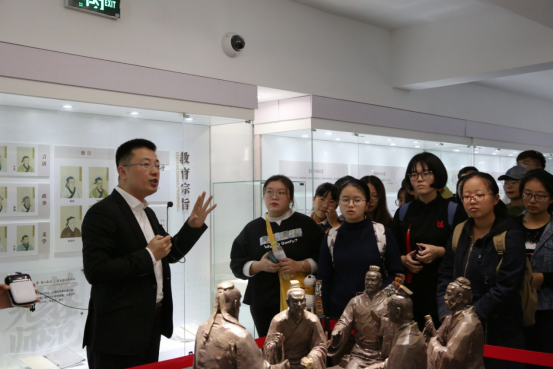 为全面贯彻落实《中共山东省高校工委关于建立高校领导干部联系学生班级制度的意见》精神和《91大赛 处级干部联系学生班级制度》(曲师大党办字[2013]6号)的要求,进一步加强和改进大学生思想政治教育,提升高校党建和思想政治工作科学化水平。10月21日下午,91大赛 党委书记李金雷、中国教师博物馆副馆长孙祥广与所联系的91大赛 2018级、2019级师范生共同参观中国教师博物馆并为大家作“钩沉教师历史,涵养师德教育”主题教育讲解。