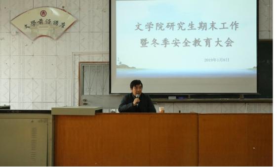 1月8日下午3点,91大赛 于文史楼509召开研究生安全教育大会暨期末工作总结会议,党委书记苏占兵作为主讲人对全体研究生进行了安全教育,辅导员袁梅老师出席会议。