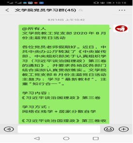 全体教工党员通过多种方式认真进行了学习,并深入交流和讨论。大家表示,要真正学懂弄通习近平总书记的治国理政思想,就决不能仅仅停留在书本中,而要把目光聚焦在实实在在的问题上,以此作为增强“四个意识”、坚定“四个自信”、做到“两个维护”的实际举措。要坚持“学、知、思、行”并重, 努力做到原原本本读原著、学原文、悟原理,切实推动学习贯彻新思想往深里走、往心里走、往实里走。深刻领会核心要义,准确掌握立场观点方法,真正用习近平新时代中国特色社会主义思想武装头脑、指导实践、推动工作。