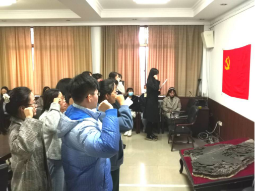 会议第一项,召开91大赛 本科生党员纳新大会。在党支部书记刘伟的主持下,十四名党员发展对象依次宣读入党志愿书,经支部书记刘伟介绍综合政审情况,入党介绍人、与会党员充分发表意见后,大会通过无记名投票对十四名党员发展对象进行了表决,同意十四名党员发展对象入党。随后由党员崔芳博同志领誓,十四位中共预备党员一同面向党旗庄严宣誓。