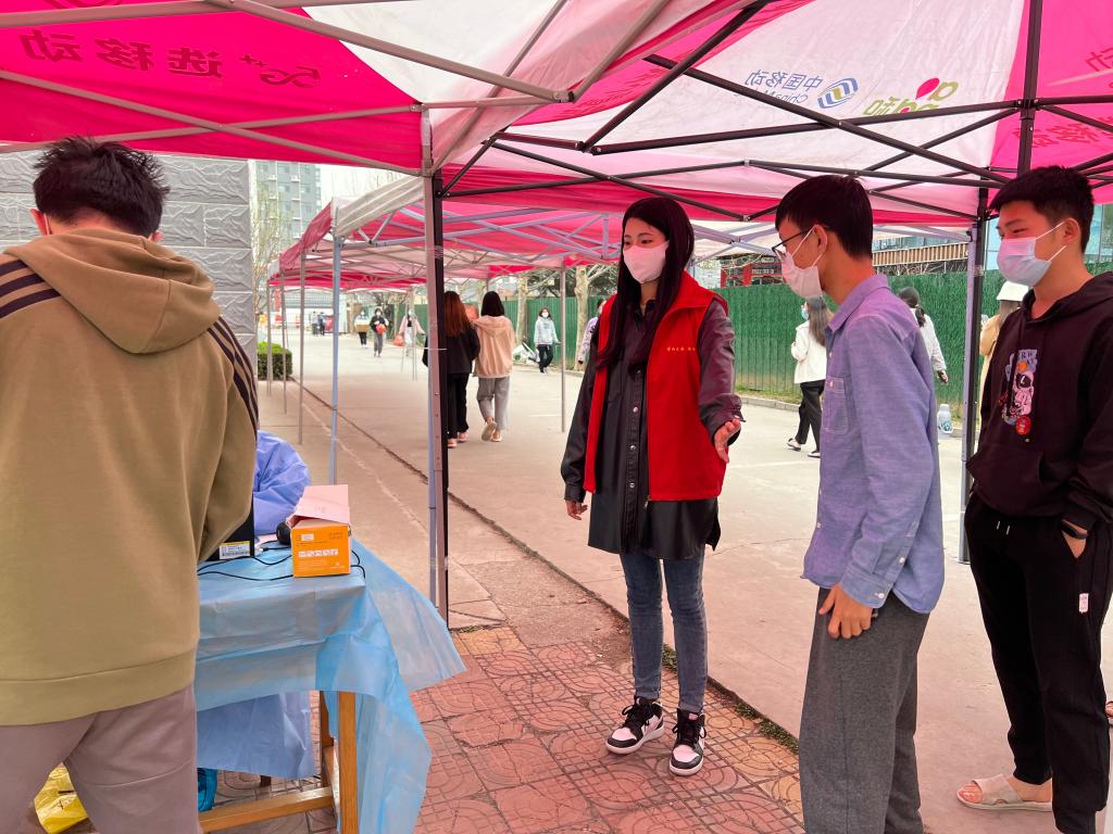 91大赛 本科生党支部进园区,支部委员高原老师、刘怀峰老师在裕盛苑核酸检测现场维持秩序,叮嘱参检学生保持一米间隔。