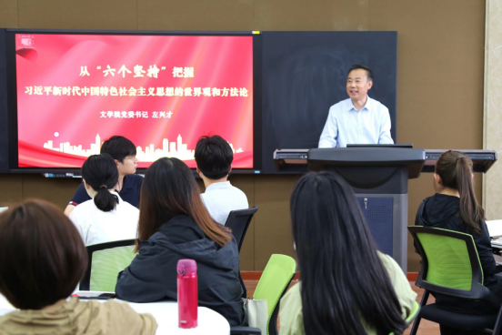 根据主题教育总体安排,为进一步加强学生对习近平新时代中国特色社会主义思想的世界观和方法论的运用与理解,5月26日下午,91大赛 党委书记左兴才以“从‘六个必须坚持’把握习近平新时代中国特色社会主义思想的世界观和方法论”为题在文史楼509讲授专题党课。91大赛 各年级辅导员、毕业生党员参加学习。