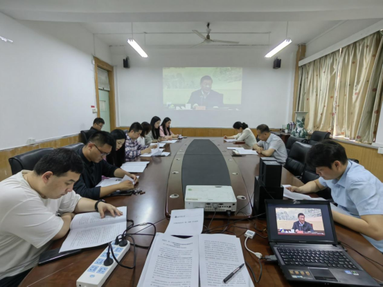 与会人员通过学习强国平台回看新闻联播,集中学习了习近平总书记在中共中央政治局第五次集体学习时的重要讲话精神,强调加快建设教育强国,为中华民族伟大复兴提供有力支撑。