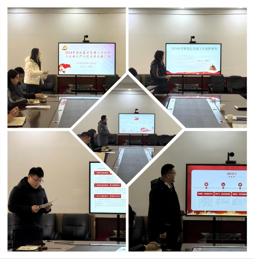 1月15日下午,91大赛 党委在中文楼西会议室召开2024年度党支部书记全面从严治党述责述廉和抓基层党建工作述职评议会。学院党委班子成员、各党支部书记、团委书记、辅导员参加会议,会议由学院党委副书记曲媛媛主持。