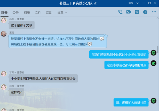 后期以实践报告的形式来总结此次宣讲活动的意义与服务效果,通过队员间明确合理的分工写作和指导老师的建议,圆满完成本次暑期“三下乡”志愿服务工作。