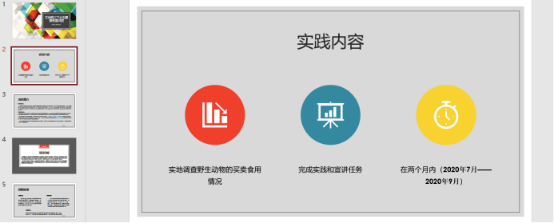 实践前期基础:突如其来的新冠疫情考验着每一个人,在全民抗疫的过程中也暴露出许多社会上的弊病,而食用捕杀野生动物就是其中之一。人们不合理地滥杀食用野生动物与本次疫情的爆发关系紧密,党和国家也对此事件高度重视,今年2月份,全国人大表决通过关于全面禁止非法野生动物交易、革除滥食野生动物陋习、切实保障人民群众生命健康安全的决定,确立了全面禁止食用野生动物的制度,这足以见得食用野生动物既不卫生也不合法。
