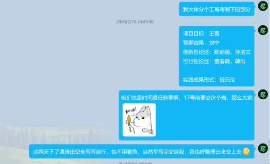 团队中各位成员之间相互配合默契,有一定的社会实践能力和项目组织能力,同时,此次社会实践也是一次可以提升自我,增长见识的机会,全体成员会竭尽全力,做好本次社会实践。
