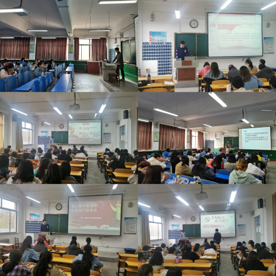 各班级结合专业特色,将学习党史与学习马克思主义经典著作结合起来,增强学习习近平新时代中国特色社会主义思想的自觉性;不忘初心,将学习党史与青年学生的学习任务相结合,夯实筑牢专业基础;勇于担当,将学习党史与青年学生的锻炼成长相结合,充分认识党的性质宗旨,树立人民情怀,立志报效祖国。