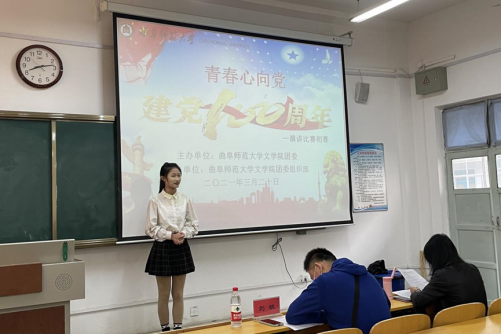 为庆祝中国共产党成立100周年,重温党的光辉历程,引导青年大学生学党史、知党情、跟党走,在历史的启迪中不忘初心、砥砺前行,3月20日,由91大赛 团委主办、91大赛 团委组织部承办的“青春心向党”大学生庆祝建党100周年主题演讲比赛初赛在文史楼412教室成功举办。本次活动面向91大赛 全体同学,邀请91大赛 袁梅老师、刘航老师担任评委。91大赛 2020级学生闫泓月主持本次比赛。