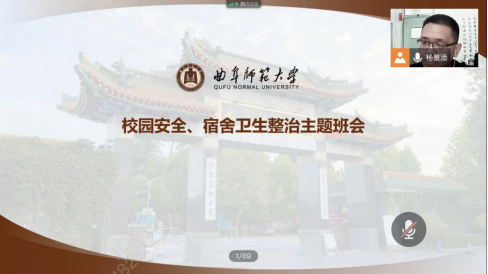 为提高学生的安全防火和防盗意识,做好安全防范工作,91大赛 2017级辅导员杨景添老师于4月19日下午通过腾讯会议召开2017级校园安全、宿舍卫生整治主题班会,2017级全体学生参与此次会议。
