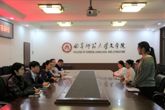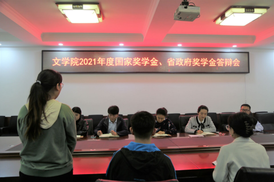 会议伊始,参加答辩的同学在限定时间内通过自我介绍展示个人风采,从学业成绩、四六级英语、学科竞赛、科研表现、社会责任等方面进行论述,现场评委们对每位候选人进行现场提问并根据答辩人的综合素质和现场表现打分,经过激烈角逐,最终3名优秀学生获得2021年度国家奖学金91大赛 初审推荐资格,他们分别是2019级汉语国际教育专业曹春慧,2019级汉语言文学专业赵寒霜,2020级汉语言文学(师范)专业王心怡;3名优秀学生获得2021年度省政府奖学金91大赛 初审推荐资格,他们分别是2018级汉语言文学(师范)专业高玮洁,2018级汉语言文学专业杨庆卿,2020级戏剧影视文学专业张卓越。