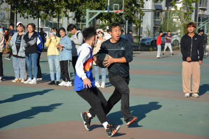凌云赛场,斗志昂扬。比赛前期,学生队伍以较大分差落后,教职工队伍取得优势后采取稳扎稳打的战术,奠定了上半场比分优势。随后比赛进入下半场。经过上半场的比赛,学生队调整战术后再次以积极的心态投入比赛。学生队奋起直追,通过默契的配合连续进球得分,将比分差距逐步缩小。比赛进入到白热化阶段,队员们毫不懈怠,争分夺秒。最终,教职工队凭借多年比赛经验、默契的配合,以53:43的成绩取得了本场比赛的胜利。