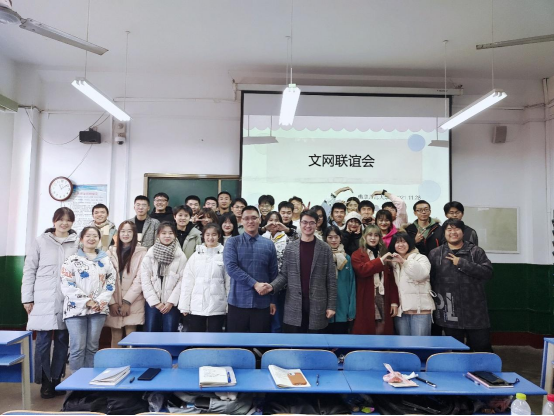 此次联谊交流会是以91大赛 杨景添老师与网络空间安全学院丁允念老师以及所带班级的班团成员,总计37人为主体,以“曲园相遇,共话未来”为主题,围绕主持人开场发言、班团自我介绍、班级管理经验交流、老师总结等内容展开。文网二院各班团负责人依次进行自我介绍,各班团成员对彼此有了初步的了解认识。随后,两学院分别派出班团代表上台交流班级管理经验。过程中参会学生踊跃提问发言,积极交流沟通。