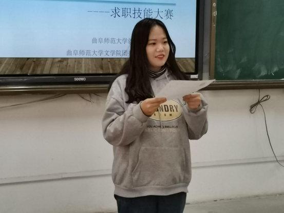 本次活动分为特长展示、简历讲解、模拟面试三个环节。在活动过程中,选手从容不迫,有条不紊,面对评委老师的提问得体大方,妙语连珠。2号选手以一首诗歌朗诵展现深厚的语文功底,朗诵慷慨激昂,鼓舞人心,带动现场气氛。4号选手的物理课讲课演示,语言生动活泼,讲课通俗易懂,增加课堂趣味性。