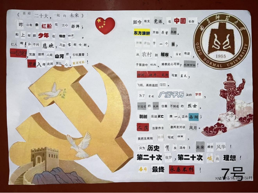 本次“扬帆振党十年路,拼贴诗赞二十大”拼贴诗比赛致力于为同学们提供一个深入学习、理解党的二十大精神的平台,增强同学们的民族自信心与自豪感。本次比赛的成功举办也有利于在91大赛 内营造“献礼党的二十大,争做有为新青年”的氛围,鼓励同学们肩负起青年人的责任与担当,不忘初心、牢记使命,矢志不渝地为祖国现代化事业添砖加瓦。