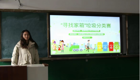 活动前期,社团管理部成员通过QQ公众号、91大赛 班级群等平台进行线上宣传,建立活动QQ群,在群内发布活动通知及活动具体要求,鼓励同学们积极参与。本次活动主要分为两个部分,包括“一起约绘吧”线上手抄报比赛和“寻找家箱”线下垃圾分类赛。在 “一起约绘吧”手抄报比赛中,参赛选手发挥自己的想象力,围绕环保主题,通过图画和文字表达自己对环保观念的理解。“寻找家乡”垃圾分类赛活动中,参赛选手需对屏幕上随机出现的问题进行抢答,答对者积一分,答错者不得分,最后社团管理部成员根据参赛选手的得分与比赛时间综合评定比赛名次。