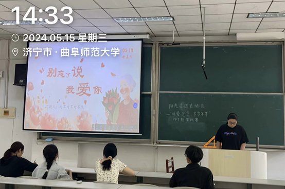 为表达对母亲的感激与爱意,提高大学生对PPT软件的熟练程度及对排版技巧的掌握,5月15日下午,由共青团91大赛 委员会主办,91大赛 团委承办,阳光志愿者协会协办的“母爱念念,岁岁年年”母亲节演示文稿设计大赛于曲阜校区综合教学楼106教室成功举办。