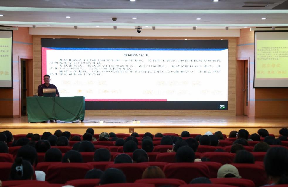 随后,杨景添老师带来题为“考研还是就业?理性规划人生路径”的专题分享。他围绕“什么是考研”“为什么考研”“怎样考研”三个核心维度系统阐述,详细介绍中文专业考研的科目设置、备考策略以及近年形势变化,并结合现实案例分析考研与就业的抉择逻辑。他强调,理性规划需基于个人兴趣、专业背景与社会需求综合考量,鼓励同学们早做准备、明确目标。同学们纷纷表示,此次讲座让他们受益匪浅,增强了他们的学习动力与规划意识。