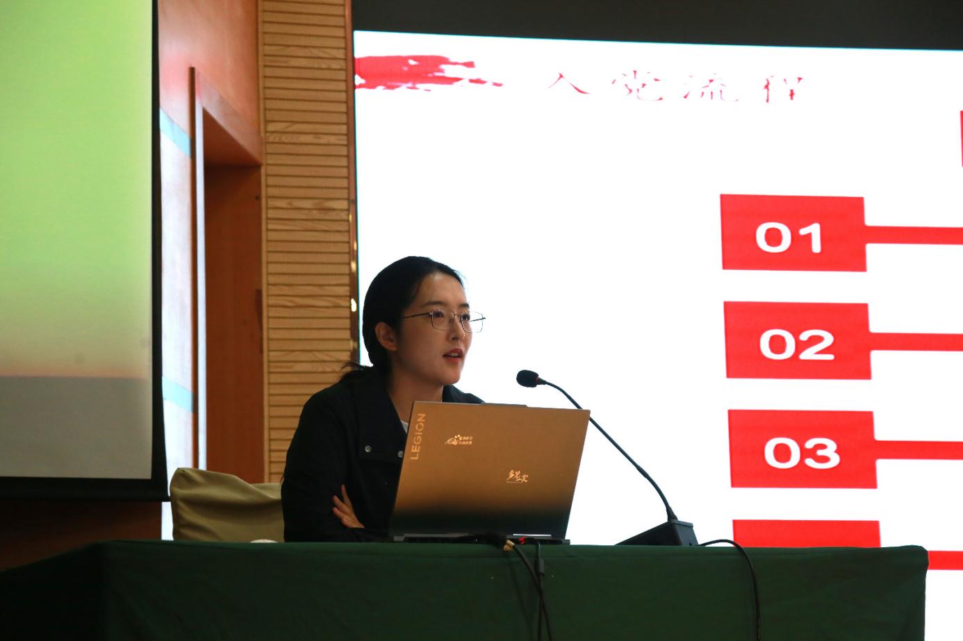 会议伊始,肖黎以“党的历史与党员发展路径”为主题开讲。她首先系统梳理红船精神、长征精神、大庆精神、王杰精神、女排精神、抗击非典精神、探月精神等不同历史时期的伟大精神,带领同学们在回溯党史中感悟共产党人的初心使命。随后,她聚焦党员发展程序,从“提交入党申请书”“成为入党积极分子”“确定发展对象”“接收为预备党员”到“预备党员转正”,通过分步解析与图文展示,清晰呈现各环节具体要求,让同学们对入党全流程有直观且深入的认识。同时,肖老师重点强调入党申请书格式规范,从封面选择、信纸要求到标题、称呼、正文、结尾的撰写细节逐一说明,助力同学们规范准备入党材料。