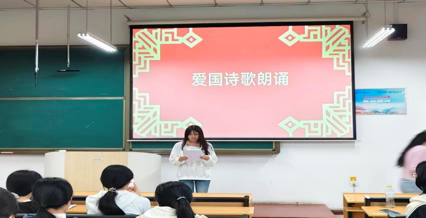 2024级1班团支部以“我与祖国共奋进”为主线组织专题学习,团支书通过讲述国家发展的生动故事,引导同学们深刻理解时代变革的历史逻辑;2024级5班团支部开展“青春献词”朗诵环节,深情朗诵《祖国啊,我亲爱的祖国》等经典诗篇,用铿锵语调展现新时代青年的爱国情怀。