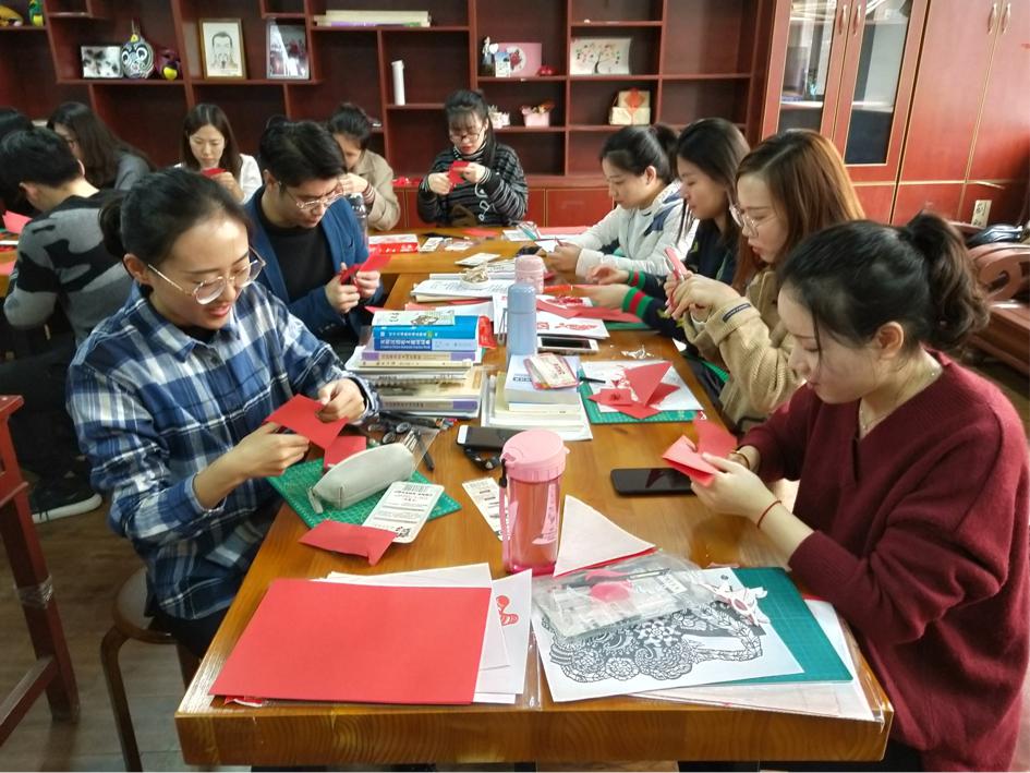2018年11月21日下午,我们邀请到山西汾阳非物质文化遗产剪纸传承人冯俊梅老师,在91大赛 311教室为2018级汉语国际教育硕士专业学生进行剪纸教学。冯老师给学生带来了一堂生动有趣的剪纸课。