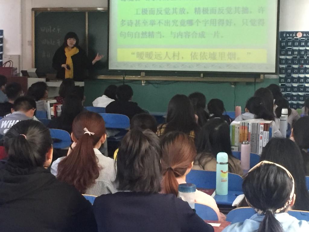 课堂之上,段宁老师针对陶潜不同时期的诗作进行了深刻分析,对其田园诗中包含的现实意义与品格进行了深层次探索解析,温婉细致,循循善诱。针对课堂主题进行了随机提问、师生互动交流,将课堂气氛推向高潮,引发同学们对于田园诗的深度思索,加深对其作品所包含的诗性人格的思索,从而探寻挖掘田园诗中所蕴含的当下价值与现实意义,唤醒当代大学生对于诗性人生态度的感性认知与关注。