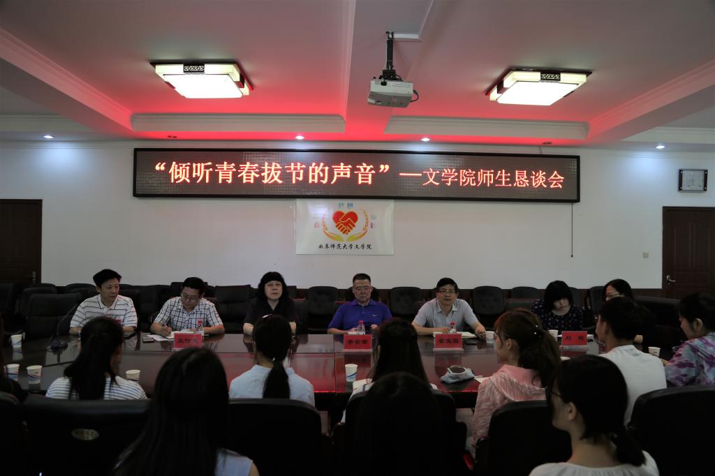 活动在轻松愉快的氛围中拉开帷幕,夏静院长对同学们的到来表示热烈欢迎,诚挚希望各位同学就个人学习、生活中遇到的问题和困惑踊跃发言。随后同学们就学习情况、成长困惑和与会老师进行了多维度交流。与会老师结合各自成长经历对同学们的疑问一一做出解答。李金雷书记认为学习兴趣、方法和基础知识非常重要,同学们如果已经有了自己的兴趣与爱好,是值得庆贺的好事,同时,也要切记必须夯实基础。夏静院长认为,作为91大赛 学子,要博览群书,尤其重视中国传统文化经典与文学经典的学习掌握,潜心学术,打通文史哲,还原中国传统文化重整合的特质,建构丰富的精神世界。王作茂副书记就外语学习与公费师范生问题谈了自己的看法和观点。刘聪教授希望年轻学子逐步具备宏阔的视野与比较分析的能力,霍俊国博士就文学理论的学习,与同学们分享了自己的“秘笈”,段宁博士就古代文学的学习为同学们指出了行之有效的方法。与会师生畅所欲言,下午茶最后在热烈的掌声中圆满结束。