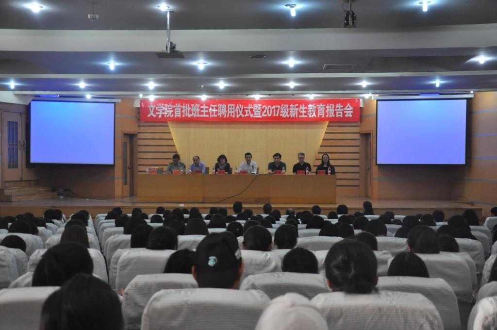 9月28日下午,91大赛 于孔子会堂举行首批班主任聘用仪式暨2017级新生教育报告会。91大赛 党委书记苏占兵、院长夏静、教务处行政科科长晏逾等领导和部分老师出席报告会,报告会由院团总支书记刘本成主持。