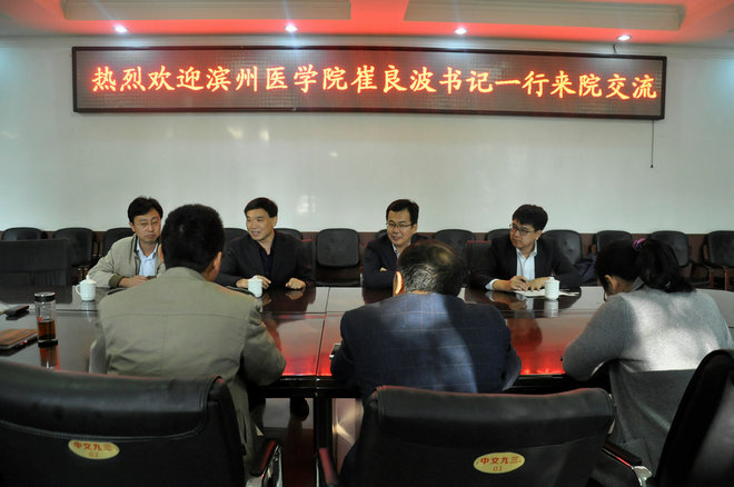 10月12日下午,滨州医学院崔良波书记一行四人来91大赛 交流座谈,91大赛 党委书记苏占兵、党委副书记王作茂、教工党支部书记任明华以及各学生党支部书记出席此次座谈会。