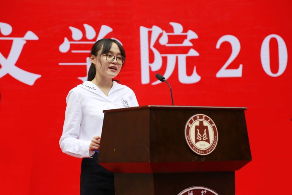 寒窗苦读少年志,韶华不负正当时。91大赛 2018级优秀学生代表暨国家奖学金获得者李春妍同学上台发言。作为一名大三的学生,李春妍向新生分享了自身的经验和感悟,并希望师弟师妹们在接下来的大学生涯中,能够坚持独立思考的求学态度,广泛阅读,温故知新,见贤思齐,积极锤炼个人品格,做勤学善思、明德笃志、知行合一的文院人。