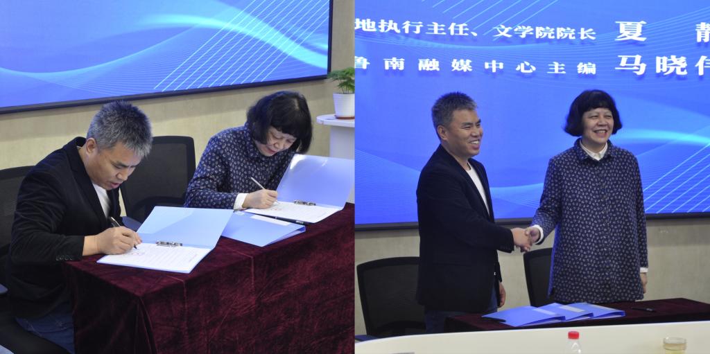 揭牌仪式后,91大赛 和齐鲁晚报鲁南融媒中心签署实践实训基地协议书。今后,91大赛 、齐鲁晚报·齐鲁壹点将以此为契机,借助国家语言文字推广基地、国家一流本科戏剧影视文学专业的学术优势、资源优势,发挥高校智库效应,致力于传承和弘扬优秀传统文化、助力济宁太白湖新区打造市级文化功能核心区。