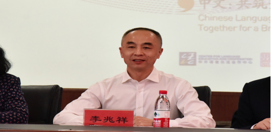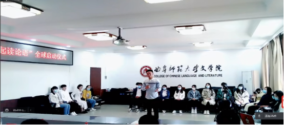 在一阵掌声中,我校党委常委、副校长李兆祥教授宣布“国际中文日——我们一起读论语”活动正式启动。