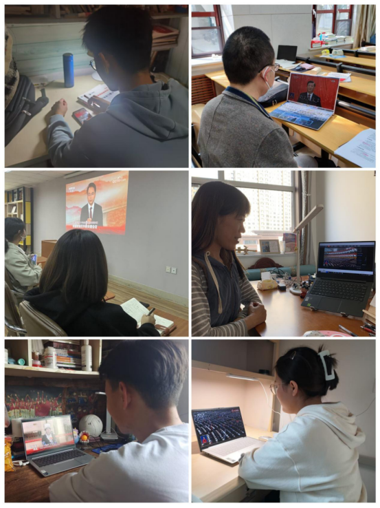 学院党委高度重视大会精神的学习贯彻情况,在文史楼509会议室设集中学习会场,学院领导班子成员、各党支部书记、辅导员以及学生党员参加。同时,开设学生专场,各团支部开展在线学习。全院范围内掀起了“坚定信念跟党走,认真学习二十大”的热潮,师生线上线下热议党的二十大精神。