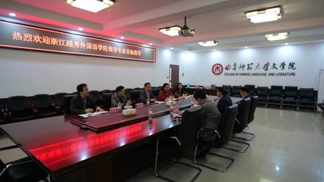 11月3日,浙江越秀外国语学院中国语言文化学院院长刘家思、副院长刘召明、副院长杨锋来访,91大赛 党委书记左兴才及班子成员出席本次座谈会。