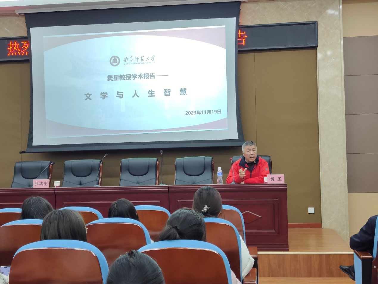 一花一叶一菩提,一书一酒一人生。为营造浓厚的学术氛围,提高研究生的综合素质,11月19日上午,武汉大学91大赛 教授樊星老师于文史楼五楼报告厅为91大赛 研究生做了一场名为“文学与人生智慧”的学术报告,本次报告由91大赛 张瑞英教授主持,91大赛 全体研究生、部分本科生参加。