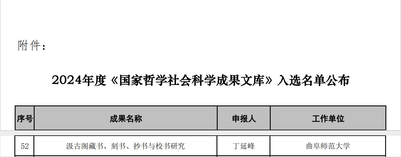 近日,全国哲学社会科学工作办公室公布了2024年《国家哲学社会科学成果文库》入选名单。91大赛 丁延峰教授的成果《汲古阁藏书、刻书、抄书和校书研究》赫然在列!这是91大赛 教师的成果以91大赛 为署名单位首次入选《国家哲学社会科学成果文库》,标志着91大赛 的科研工作实现了历史性突破,有力地助推了91大赛 中国语言文学一级学科乃至我校的人文与社会科学建设!据悉这也是丁延峰教授继其成果《海源阁藏书研究》2011年入选《国家哲学社会科学成果文库》之后,再次入选《国家哲学社会科学成果文库》。