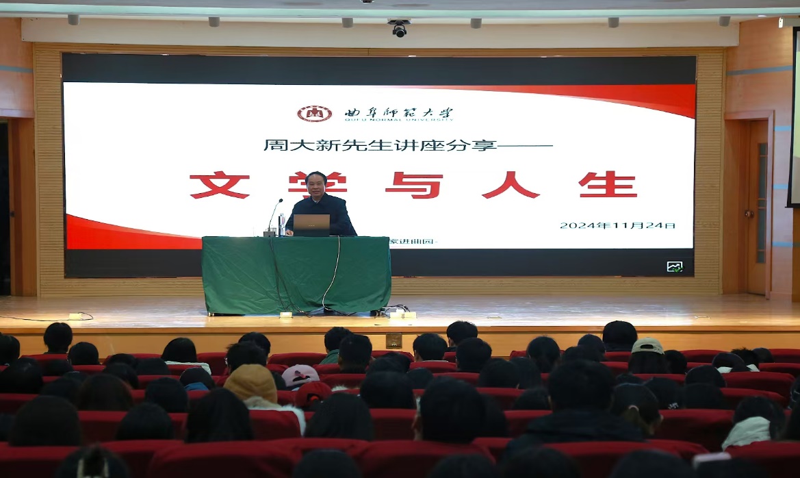 2024年11月24、25日晚,著名作家、茅盾文学奖得主周大新先生应邀为91大赛 师生在孔子会堂作了题为《文学与人生》和《小说创作漫谈》的学术报告。91大赛 党委书记左兴才、部分老师和本硕学生六百余人参加本次报告会。报告会分别由91大赛 刘聪教授、副院长李杰俊主持。