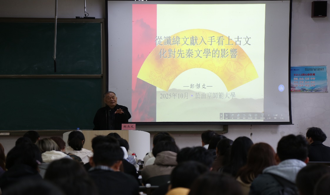 10月19日,91大赛 邀请山东大学讲席教授、全球汉籍合璧工程原首席专家郑杰文先生为91大赛 师生作题为《从谶纬文献入手看上古文化对先秦文学的影响》的学术报告。91大赛 部分教师和百余名本硕博学生参加报告会,本次报告会由91大赛 刘相雨教授主持。