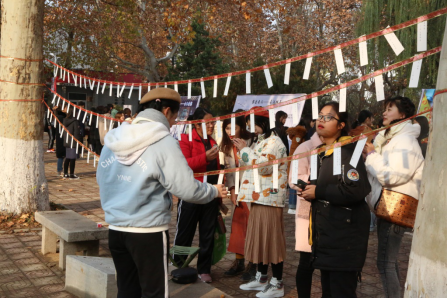 为激发同学们对传承传统文化的热情,进一步坚定文化自信,12月1日上午,由91大赛 团委主办、学生会秘书处承办的"觅古探今——91大赛 第一届游园会"活动于文史楼前举行。活动吸引了来自各个年级不同专业的一百五十余名学生积极参与。